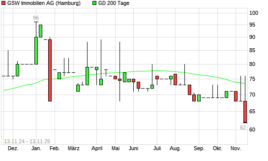 Mit dem Rücksetzer auf 68,00 EUR hat die GSW Immobilien-Aktie am 12.11.2025 die 200-Tage-Linie nach unten gekreuzt.
