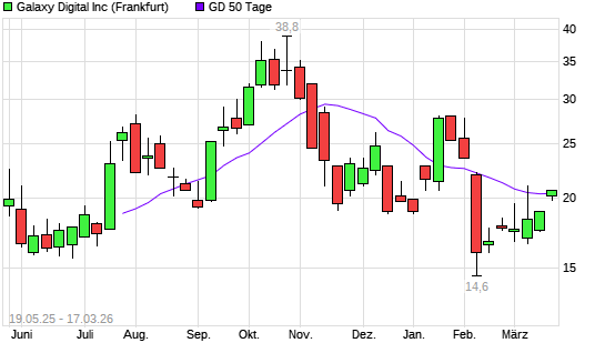 Mit dem Anstieg auf 20,60 EUR hat die Galaxy Digital-Aktie am 16.03.2026 die 50-Tage-Linie nach oben gekreuzt.