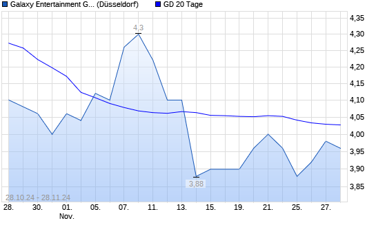 Mit dem Anstieg auf 4,06 EUR hat die Galaxy Entertainment-Aktie am 27.11.2024 die 20-Tage-Linie nach oben gekreuzt.