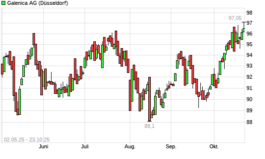 Mit dem Anstieg auf 96,95 EUR hat die Galenica-Aktie (ISIN CH0360674466) am 22.10.2025 ein neues All-Time-High erreicht und damit den Kurs vom 21.10.2025 eingestellt.