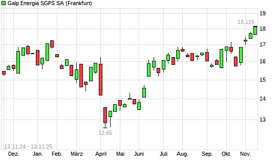 Mit dem Anstieg auf 18,02 EUR hat die Galp Energia-Aktie (ISIN PTGAL0AM0009) am 12.11.2025 ein neues 12-Monats-Hoch erreicht und damit den Kurs vom 05.11.2025 eingestellt.