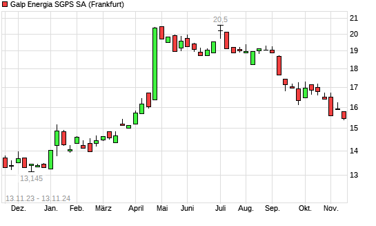 Mit dem Rücksetzer auf 15,37 EUR hat die Galp Energia-Aktie (ISIN PTGAL0AM0009) am 12.11.2024 ein neues 6-Monats-Tief erreicht und damit den Kurs vom 01.11.2024 eingestellt.