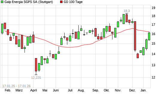 Mit dem Rücksetzer auf 15,98 EUR hat die Galp Energia-Aktie am 16.01.2026 die 100-Tage-Linie nach unten gekreuzt.