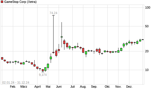 Mit dem Anstieg auf 30,40 EUR hat die GameStop-Aktie (ISIN US36467W1099) am 30.12.2024 ein neues 6-Monats-Hoch erreicht und damit den Kurs vom 27.12.2024 eingestellt.