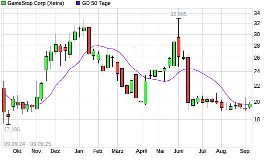 Mit dem Anstieg auf 19,60 EUR hat die GameStop-Aktie am 08.09.2025 die 50-Tage-Linie nach oben gekreuzt.