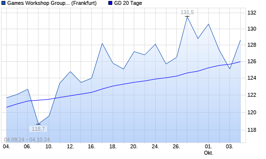 Mit dem Rücksetzer auf 125,10 EUR hat die Games Workshop Group-Aktie am 03.10.2024 die 20-Tage-Linie nach unten gekreuzt.