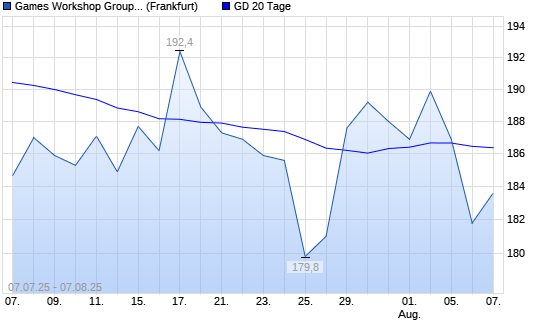 Mit dem Rücksetzer auf 181,80 EUR hat die Games Workshop Group-Aktie am 06.08.2025 die 20-Tage-Linie nach unten gekreuzt.