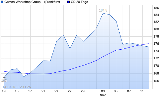 Mit dem Rücksetzer auf 175,40 EUR hat die Games Workshop Group-Aktie am 11.11.2025 die 20-Tage-Linie nach unten gekreuzt.