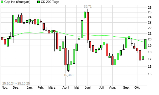 Mit dem Anstieg auf 19,68 EUR hat die Gap-Aktie am 24.10.2025 die 200-Tage-Linie nach oben gekreuzt.