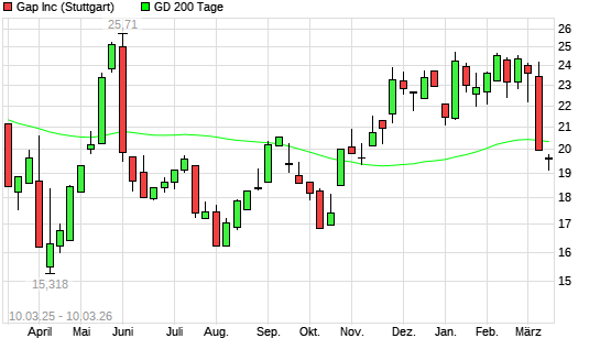 Mit dem Rücksetzer auf 19,52 EUR hat die Gap-Aktie am 09.03.2026 die 200-Tage-Linie nach unten gekreuzt.