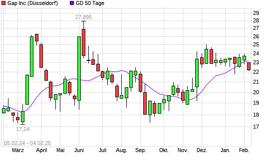 Mit dem Rücksetzer auf 22,35 EUR hat die Gap-Aktie am 03.02.2025 die 50-Tage-Linie nach unten gekreuzt.