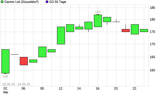 Mit dem Rücksetzer auf 176,00 EUR hat die Garmin-Aktie am 23.05.2025 die 50-Tage-Linie nach unten gekreuzt.