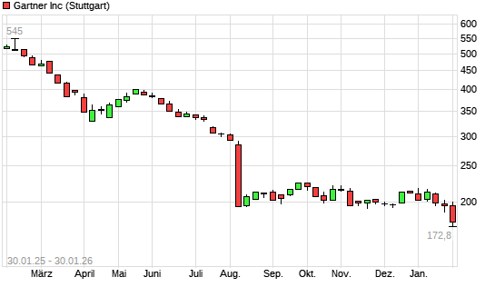 Mit dem Rücksetzer auf 190,05 EUR hat die Gartner-Aktie (ISIN US3666511072) am 29.01.2026 ein neues 3-Jahres-Tief erreicht und damit den Kurs vom 18.11.2025 eingestellt.