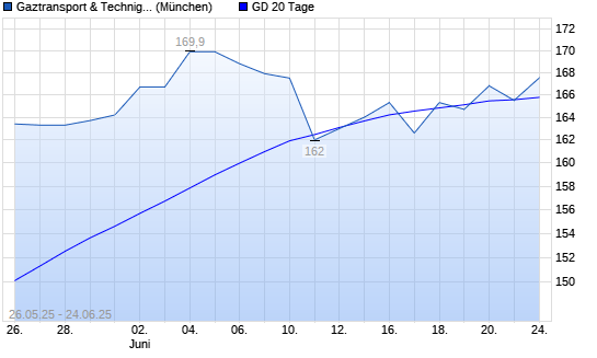 Mit dem Rücksetzer auf 164,80 EUR hat die Gaztransport & Technigaz-Aktie am 23.06.2025 die 20-Tage-Linie nach unten gekreuzt.