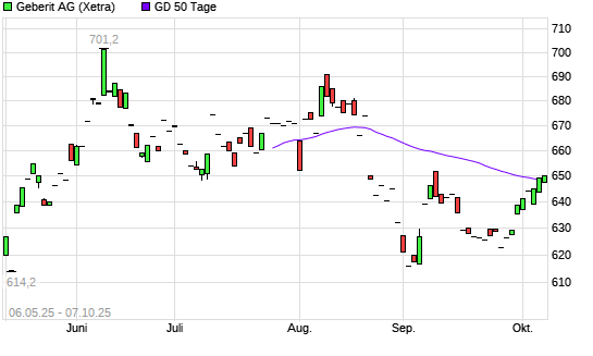 Mit dem Anstieg auf 649,00 EUR hat die Geberit-Aktie am 06.10.2025 die 50-Tage-Linie nach oben gekreuzt.