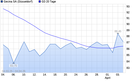 Mit dem Anstieg auf 86,75 EUR hat die Gecina-Aktie am 03.04.2025 die 20-Tage-Linie nach oben gekreuzt.