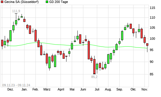 Mit dem Anstieg auf 97,50 EUR hat die Gecina-Aktie am 08.11.2024 die 200-Tage-Linie nach oben gekreuzt.