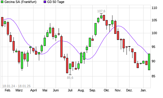 Mit dem Anstieg auf 92,55 EUR hat die Gecina-Aktie am 17.01.2025 die 50-Tage-Linie nach oben gekreuzt.