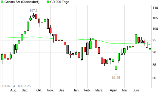 Mit dem Rücksetzer auf 91,60 EUR hat die Gecina-Aktie am 02.07.2025 die 200-Tage-Linie nach unten gekreuzt.