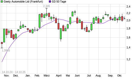 Mit dem Anstieg auf 2,09 EUR hat die Geely Automobile-Aktie am 13.10.2025 die 50-Tage-Linie nach oben gekreuzt.