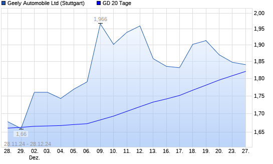 Mit dem Rücksetzer auf 1,85 EUR hat die Geely Automobile-Aktie am 27.12.2024 die 20-Tage-Linie nach unten gekreuzt.
