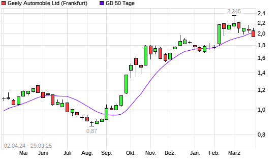 Mit dem Rücksetzer auf 1,94 EUR hat die Geely Automobile-Aktie am 28.03.2025 die 50-Tage-Linie nach unten gekreuzt.