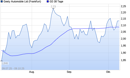 Mit dem Anstieg auf 2,13 EUR hat die Geely Automobile-Aktie am 08.10.2025 die 38-Tage-Linie nach oben gekreuzt.Die Geely Automobile-Aktie befindet sich seit dem 10.07.2025 im langfristigen Aufwärtstrend ...weiterlesen
