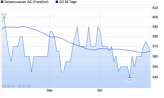 Mit dem Rücksetzer auf 565,00 EUR hat die Gelsenwasser-Aktie am 31.10.2025 die 38-Tage-Linie nach unten gekreuzt.