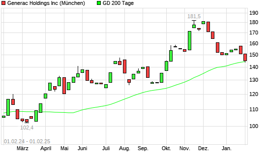 Mit dem Anstieg auf 144,95 EUR hat die Generac-Aktie am 31.01.2025 die 200-Tage-Linie nach oben gekreuzt.