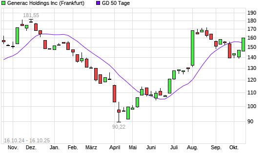 Mit dem Anstieg auf 157,65 EUR hat die Generac-Aktie am 15.10.2025 die 50-Tage-Linie nach oben gekreuzt.