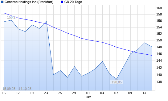 Mit dem Rücksetzer auf 146,00 EUR hat die Generac-Aktie am 13.10.2025 die 20-Tage-Linie nach unten gekreuzt.