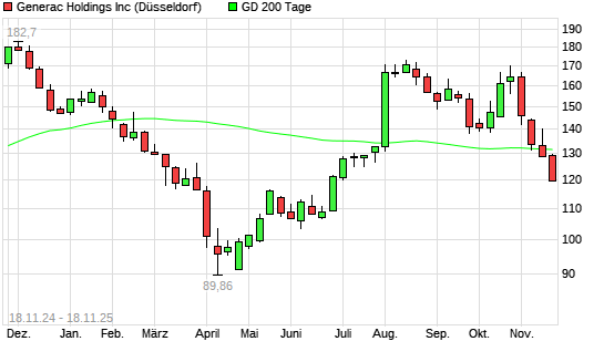 Mit dem Rücksetzer auf 129,00 EUR hat die Generac-Aktie am 17.11.2025 die 200-Tage-Linie nach unten gekreuzt.