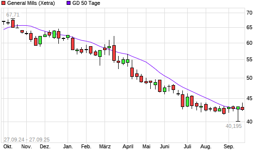 Mit dem Anstieg auf 42,77 EUR hat die General Mills-Aktie am 26.09.2025 die 50-Tage-Linie nach oben gekreuzt.