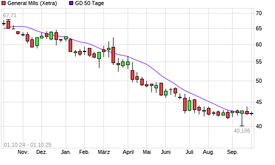 Mit dem Anstieg auf 42,73 EUR hat die General Mills-Aktie am 30.09.2025 die 50-Tage-Linie nach oben gekreuzt.