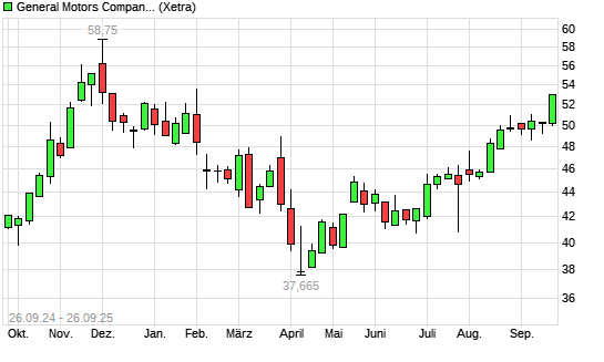 Mit dem Anstieg auf 51,40 EUR hat die General Motors-Aktie (ISIN US37045V1008) am 25.09.2025 ein neues 6-Monats-Hoch erreicht und damit den Kurs vom 24.09.2025 eingestellt.