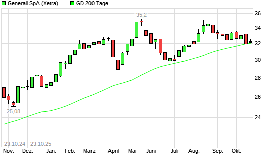 Mit dem Anstieg auf 32,20 EUR hat die Generali-Aktie am 22.10.2025 die 200-Tage-Linie nach oben gekreuzt.