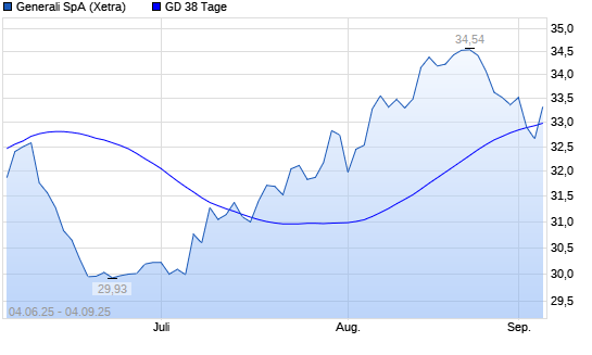 Mit dem Rücksetzer auf 32,50 EUR hat die Generali-Aktie am 03.09.2025 die 38-Tage-Linie nach unten gekreuzt.