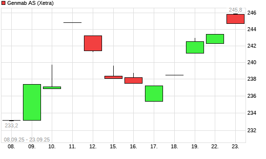 Mit dem Anstieg auf 242,90 EUR hat die Genmab-Aktie (ISIN DK0010272202) am 22.09.2025 ein neues 12-Monats-Hoch erreicht und damit den Kurs vom 11.09.2025 eingestellt.