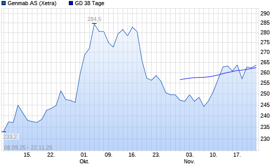 Mit dem Anstieg auf 264,10 EUR hat die Genmab-Aktie am 21.11.2025 die 38-Tage-Linie nach oben gekreuzt.