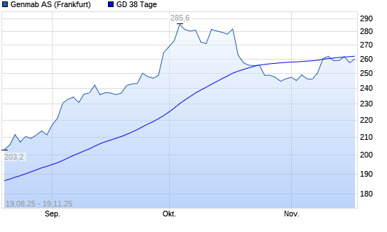 Mit dem Rücksetzer auf 257,30 EUR hat die Genmab-Aktie am 18.11.2025 die 38-Tage-Linie nach unten gekreuzt.