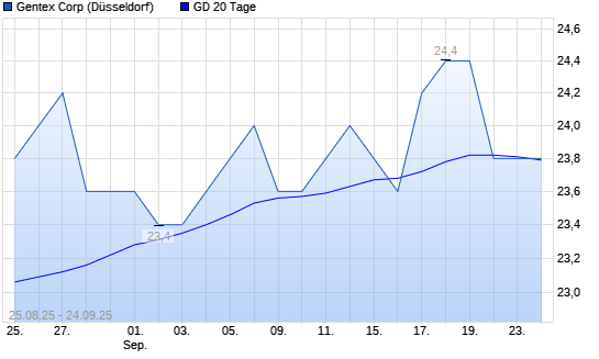 Mit dem Rücksetzer auf 23,80 EUR hat die Gentex-Aktie am 23.09.2025 die 20-Tage-Linie nach unten gekreuzt.