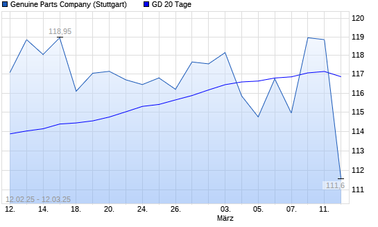 Mit dem Anstieg auf 118,80 EUR hat die Genuine Parts Company-Aktie am 11.03.2025 die 20-Tage-Linie nach oben gekreuzt.