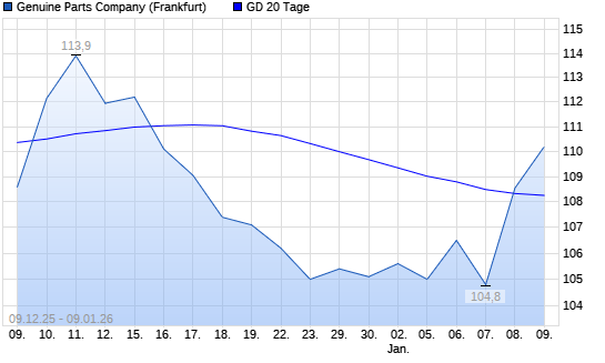 Mit dem Anstieg auf 108,55 EUR hat die Genuine Parts Company-Aktie am 08.01.2026 die 20-Tage-Linie nach oben gekreuzt.