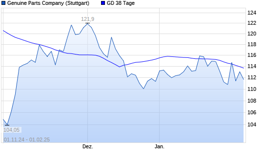 Mit dem Anstieg auf 113,40 EUR hat die Genuine Parts Company-Aktie am 31.01.2025 die 38-Tage-Linie nach oben gekreuzt.