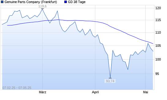 Mit dem Rücksetzer auf 104,15 EUR hat die Genuine Parts Company-Aktie am 06.05.2025 die 38-Tage-Linie nach unten gekreuzt.