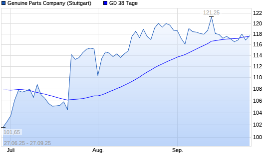 Mit dem Rücksetzer auf 116,35 EUR hat die Genuine Parts Company-Aktie am 26.09.2025 die 38-Tage-Linie nach unten gekreuzt.