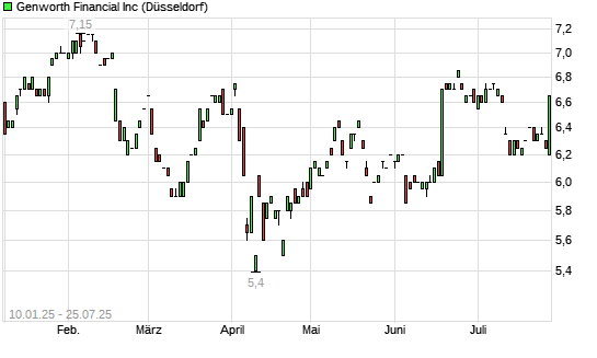 Mit dem Anstieg auf 7,65 EUR hat die Genworth Financial-Aktie (ISIN US37247D1063) am 22.09.2025 ein neues 10-Jahres-Hoch erreicht und damit den Kurs vom 19.09.2025 eingestellt.