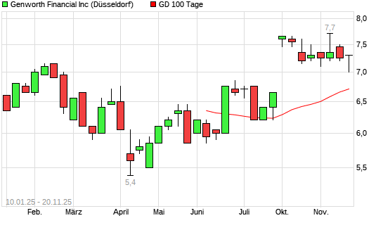 Mit dem Anstieg auf 7,25 EUR hat die Genworth Financial-Aktie am 19.11.2025 die 100-Tage-Linie nach oben gekreuzt.