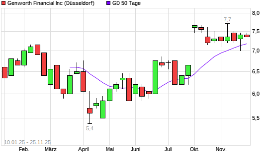 Mit dem Anstieg auf 7,45 EUR hat die Genworth Financial-Aktie am 24.11.2025 die 50-Tage-Linie nach oben gekreuzt.