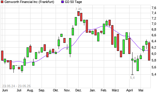 Mit dem Rücksetzer auf 6,10 EUR hat die Genworth Financial-Aktie am 22.05.2025 die 50-Tage-Linie nach unten gekreuzt.